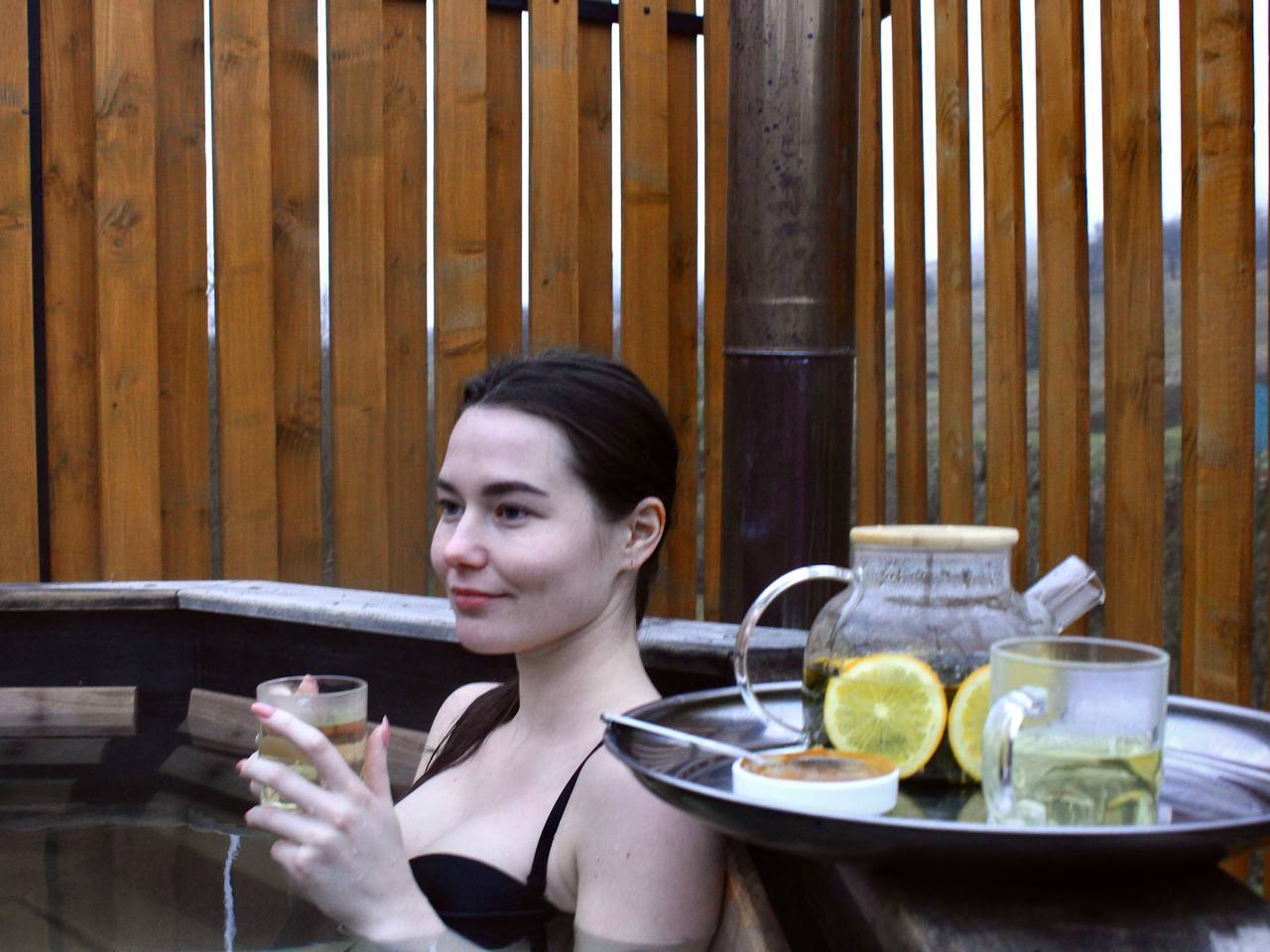 ви зможете вийти на берег річки, де розташована баня з чаном на